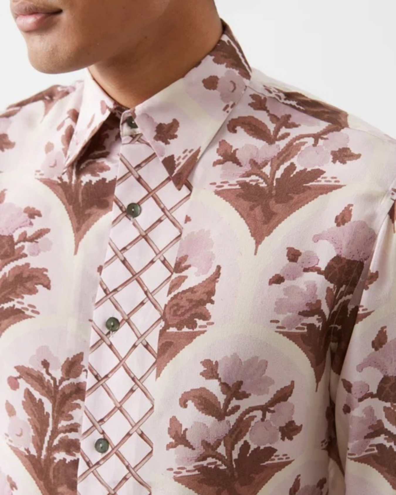 SHIRT IN SILK WITH ARCHIVE TRELLIS FLORAL PRINT - 73LONDON